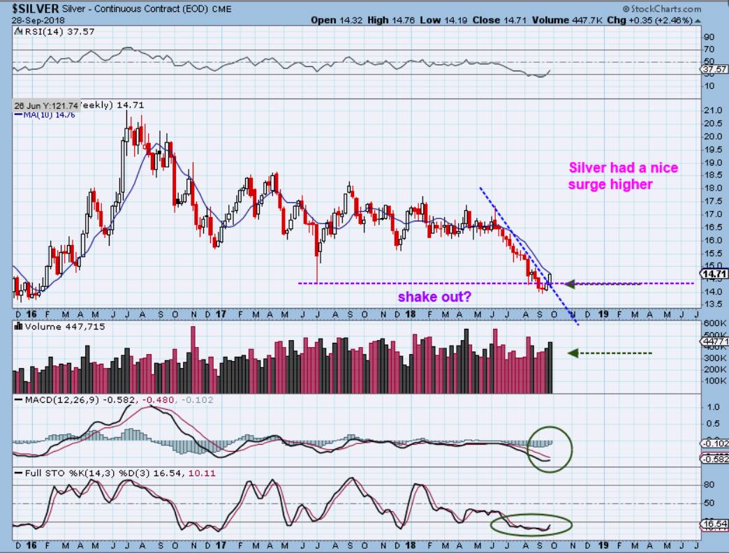 SILVER – And look at the SLVER WEEKLY CHART. That looks like a shake out & recovery. Notice : THAT IS A SILVER RECOVERY ON FED WEEK, so how can we conclude that the FOMC MTG & RATE HIKE was bearish precious Metals? We can’t if Silver burst higher with volume on the weekly chart, and we now have a shake out.