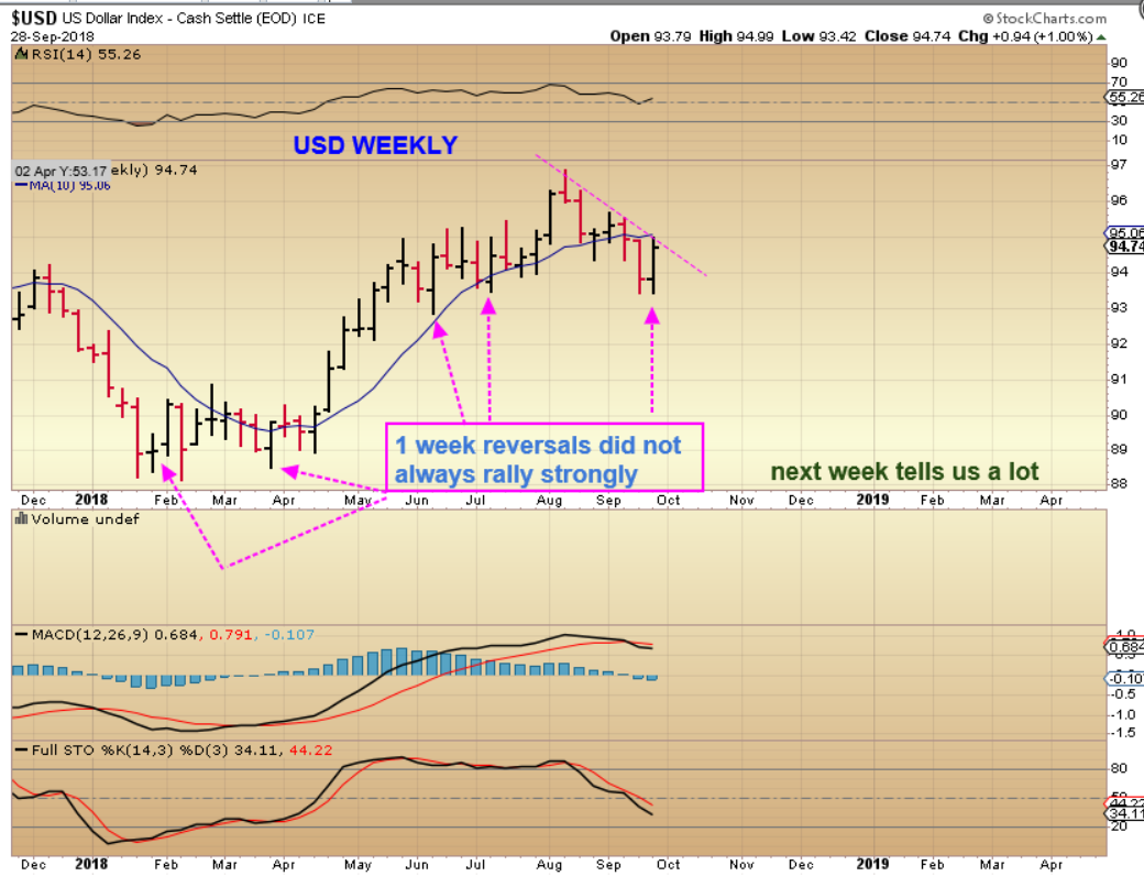 USD WEEKLY – 1 week reversals in the past did not always follow through, so we’ll see.