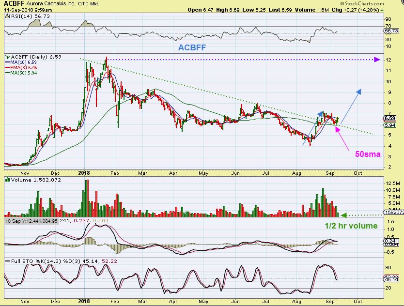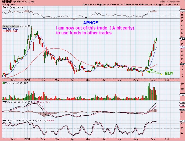 APHQF – This was an awesome trade, it is completing that move to prior highs. If ACBFF , CANN, CBWTF, and others can do that, the gains are great.