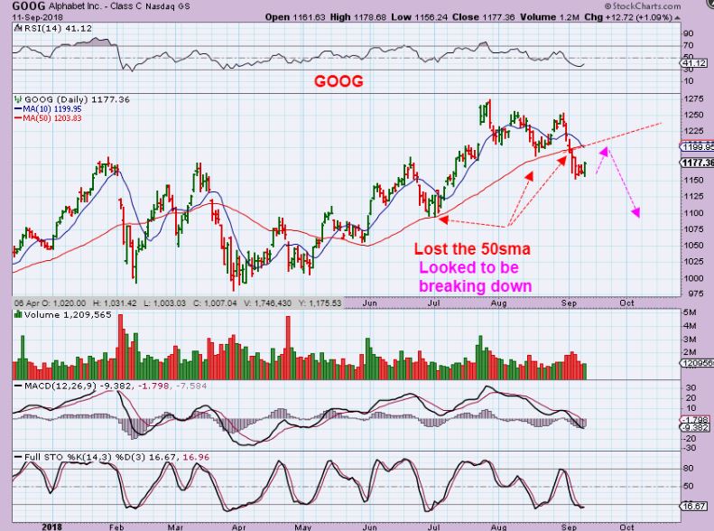 So we’ll see how this plays out, it could be that the markets make another run higher . Anyone wanting to take a short term trade here can & should use a tight stop. Some Tech stocks like SAIL, SQ, AMZN ( Could be a buy right here with the reversal), look bullish, but many others look to be breaking down ( MU, CY, GOOG, TWTR, FB, and more) , so it is a mixed picture. This may just be a short term bounce.