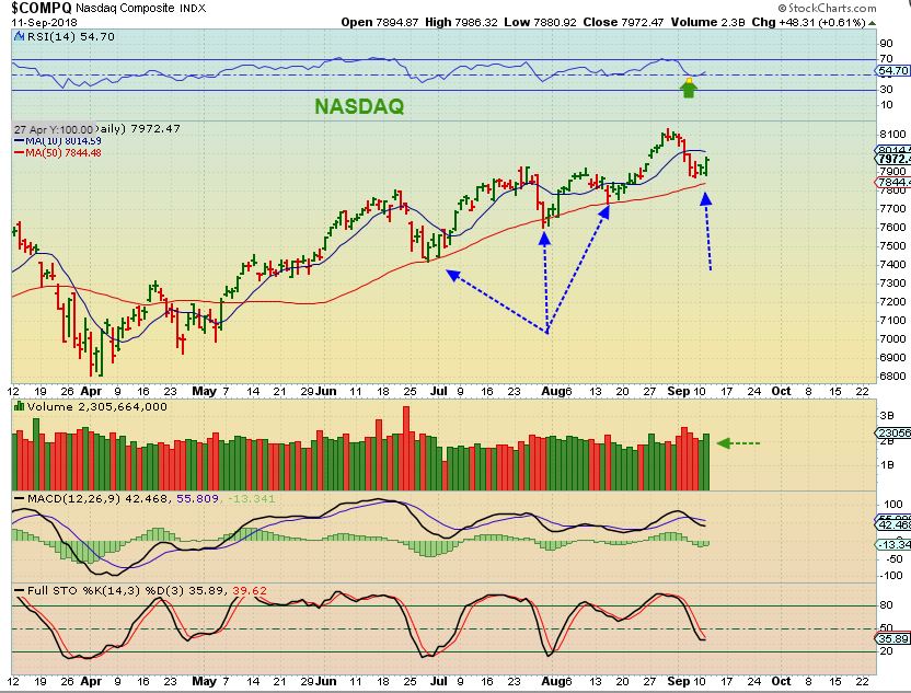 NASDAQ – I was watching the NASDAQ at the 50sma, and so far it didn’t even reach the 50sma before it put in a good reversal.