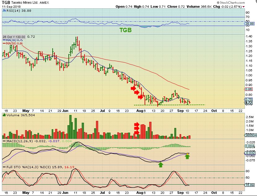 TGB – I mentioned CLF and SHLO the other day, and m watching other stocks in the METALS area. They also may be shaping up for future opportunities, possibly with a USD drop.