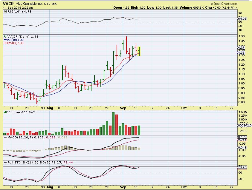 NXTTF – This has a similar pattern, the run to former highs out of a nice base. This was recommended at $1.15 – $1.20.