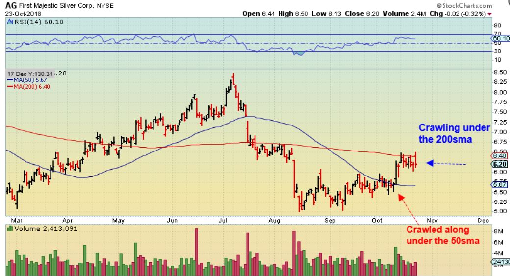 AG – I bought it, even though AG could drop and test the 50 sma. At this point, it looks like it wants to break above the 200 sma.