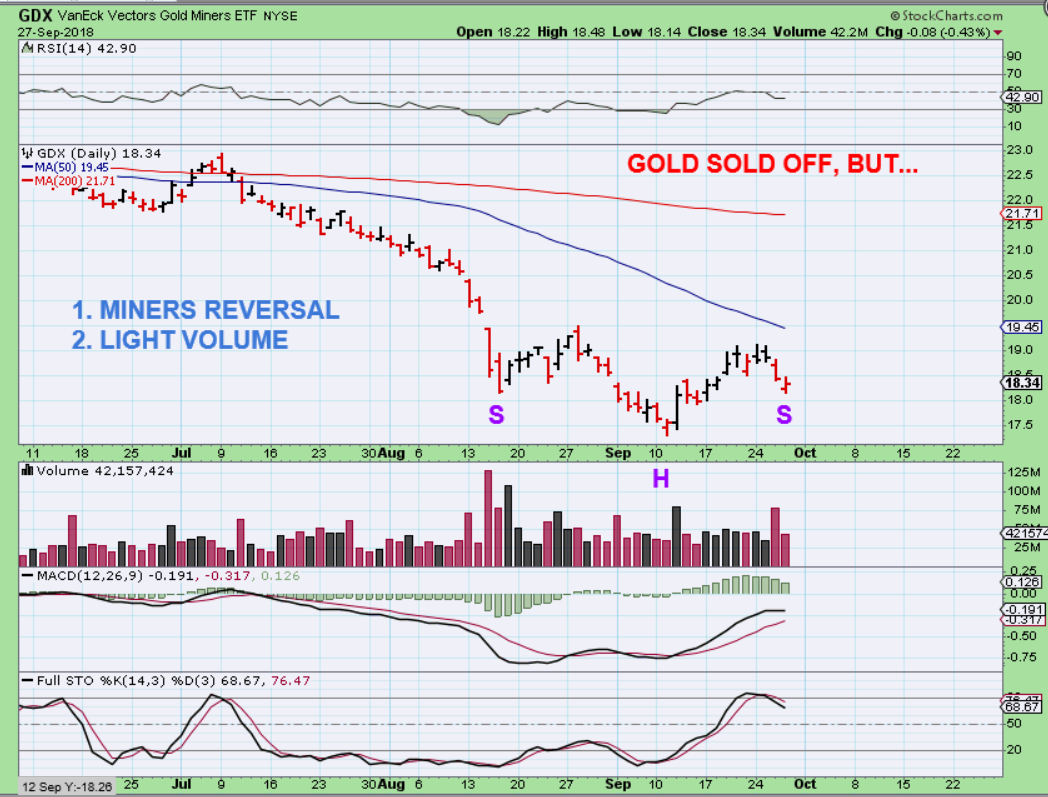 GDX SEPTEMBER  – Last month I had been discussing that the Lows should be in place and a possible inverse H&S was forming.  It also could be 1-2 of a 1-2-3-4-5 wave move.  We were still buying individual Miners, I bought GORO, SBGL, etc