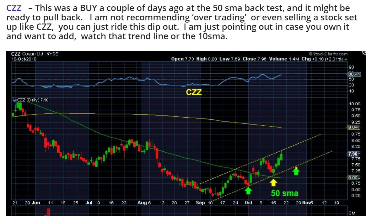 CZZ – This is a direct ‘copy’ FROM FRIDAYS REPORT– it could dip, but just ride it out.