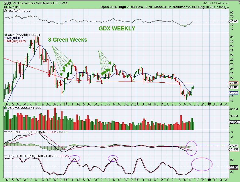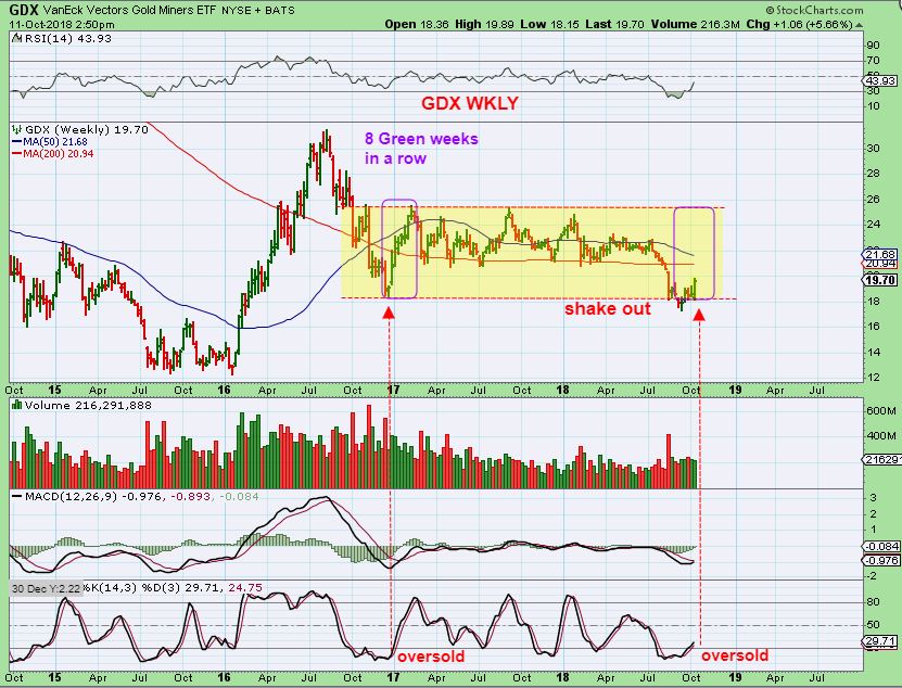 GDX WEEKLY – So the weekend report last week showed that we likely had a stop run or a ‘shake out’ and have since we recovered.  We had been buying for a while now, but if you were not in yet, it was a bullish move that allows you to enter with a stop below recent lows. GDX WEEKLY remained very oversold.