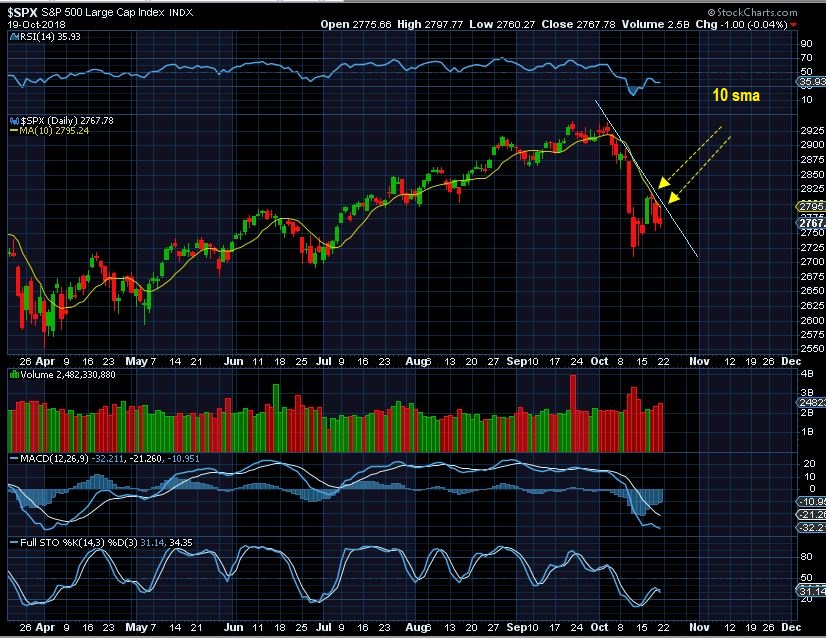 SPX DAILY  – I have been discussing how the markets tend to be choppy and difficult after these ICL types of drops, and so far, that is what we see.  We do have a swing low, but it remains unconfirmed.  Price is being rejected at the 10sma and the down trend has not been broken.  A safer buy would be to wait for those break outs.