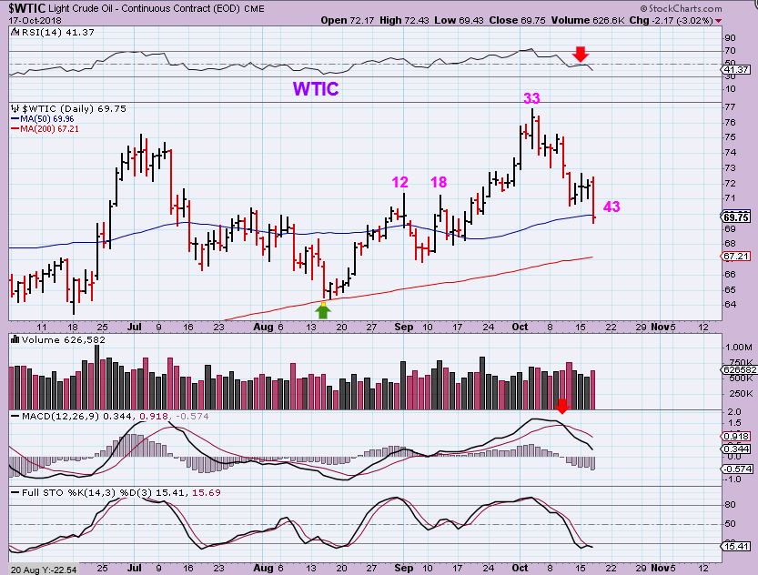 WTIC –  This chart from OCT 17 shows the 200 sma, and I mentioned in that report that we may see OIL  tag that  area ( $67). It did that in August.