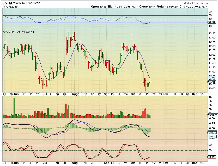 CSTM – When the Metals stocks run, I have traded this . It is oversold, but this doesn’t look all that bullish, right? Watch for a break above the 10sma. Let’s take a step back…