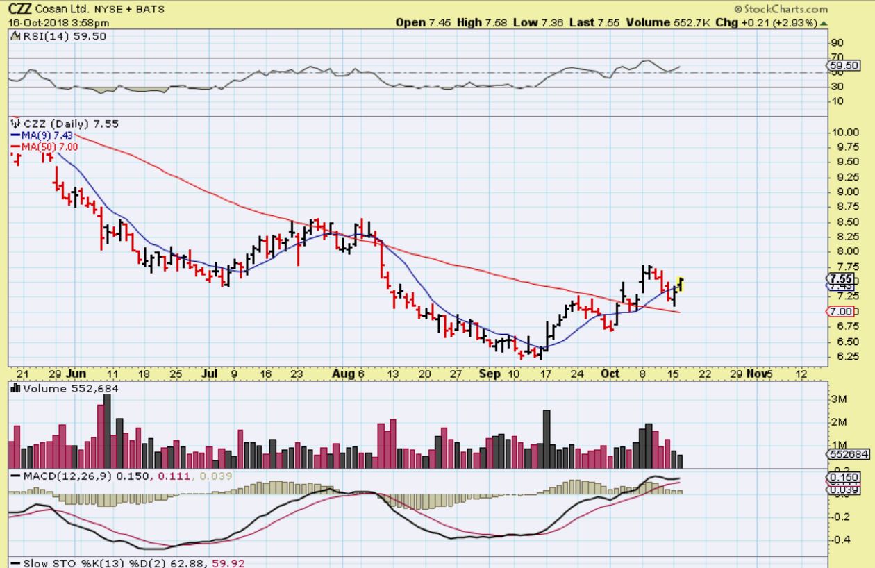 CZZ – Now $7.78 – it is still steadily moving higher.