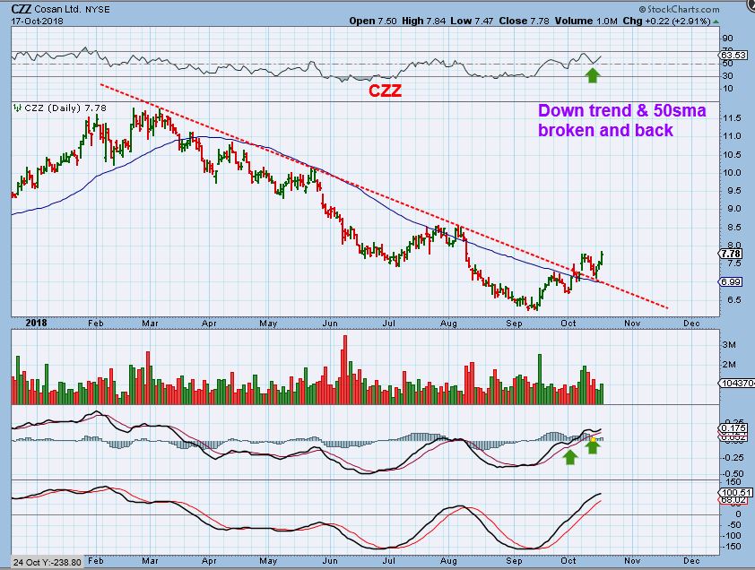 CZZ at $7.55 was a Buy in yesterdays report, it was actually a buy at the 50sma nack test near $7.10