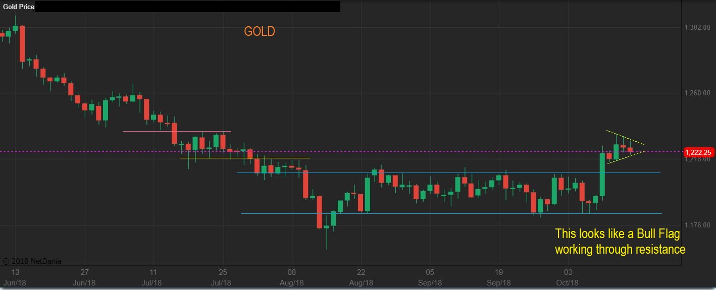 GOLD – I may or may not get my running correction, but the FOMC Minutes release did not send Gold down very far, and I sea bull flag possibility too. The set up remains bullish at this point. Even a drop to back test the base ( Or 50sma) is fine at this point, I believe that we have our ICL in place.
