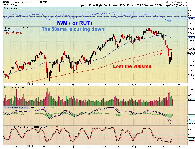 IWM – The IWM sold off even deeper than the other sectors and deeper than it did in Feb & March of this year. I am interested in seeing how these markets react at the 50sma.