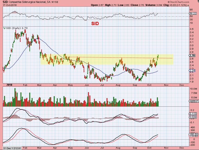 Stocks mentioned recently are still acting ok. We’ll look at a few. We discussed CZZ , SID , AKS, CLF, X, CSTM, GGB , etc