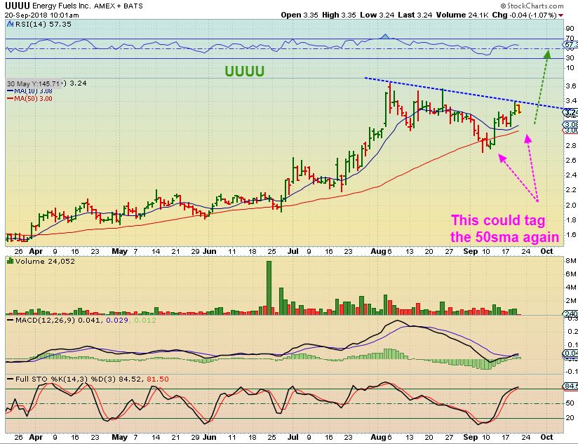 UUUU September – A recent buy, but as noted on this chart – “This could tag the 50sma again” – It would still be fine.