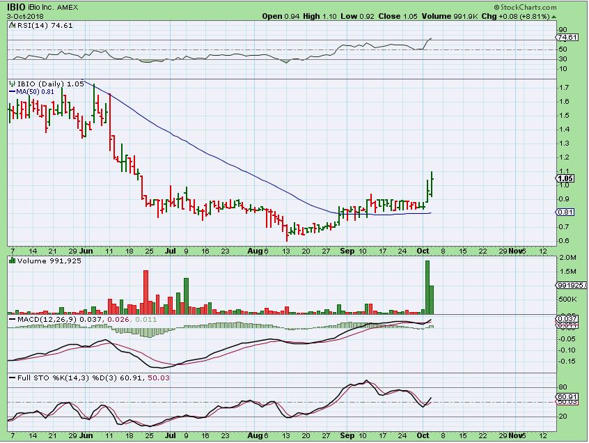 IBIO – from yesterdays report, PERFECT run above the 50sma.