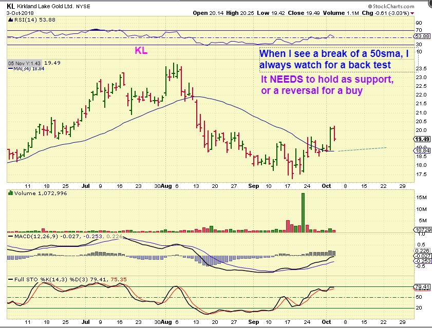 KL – So watch stocks like KL ( there are others like it) as it dips and approaches the 50sma. Read the chart.
