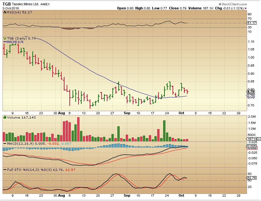 TGB – The same applies to a pull back in Metals. TGB is gently drifting to support so far. CENX got hit hard, but several others like AA, AKS, FCX, HBM, etc were green Wednesday. Look up AA.
