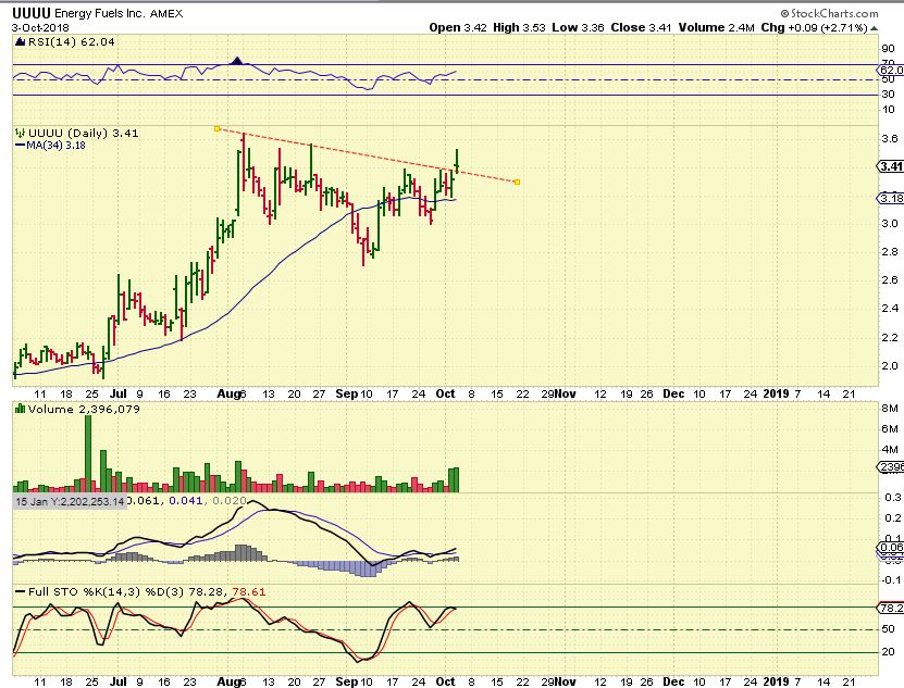 UUUU Currently – It did drop to tag that 50sma again, but Wednesday it attempted to break out , as shown here.