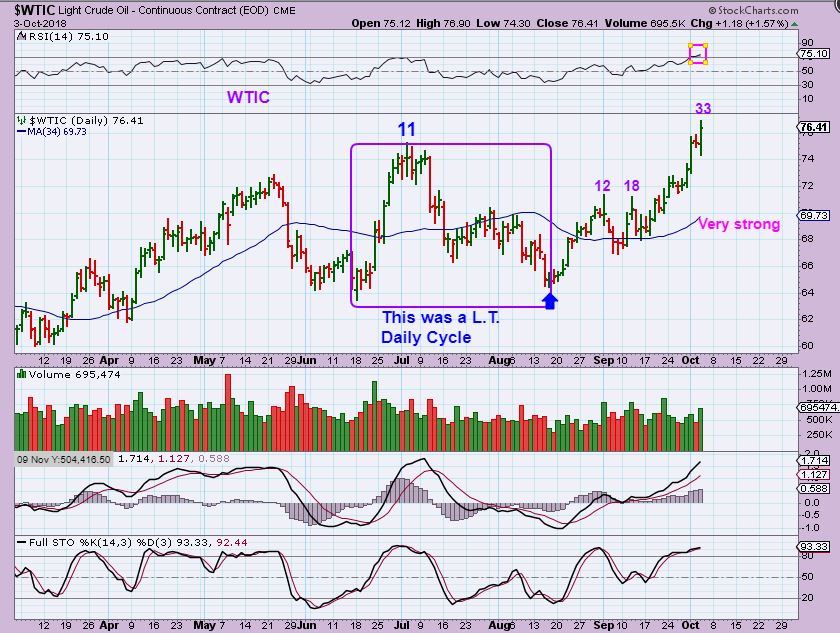 WTIC – Oil certainly has played out Bullishly. Oil is already likely to be a R.T. Daily. It has been strong. So…