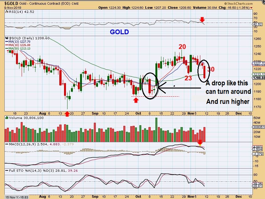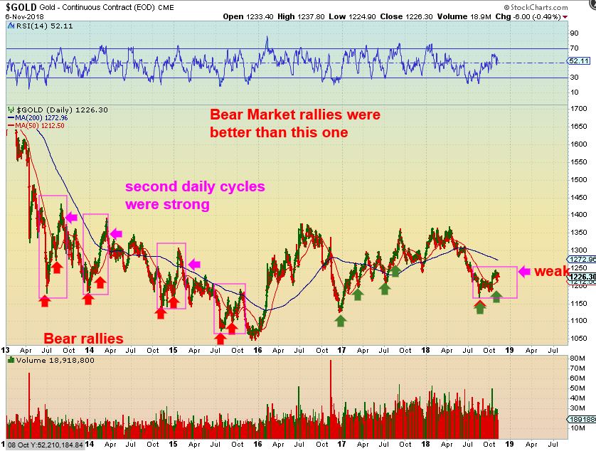 GOLD – We saw a big drop on Oct 8 reverse higher, so there is hope that we get a dcl soon. That said…