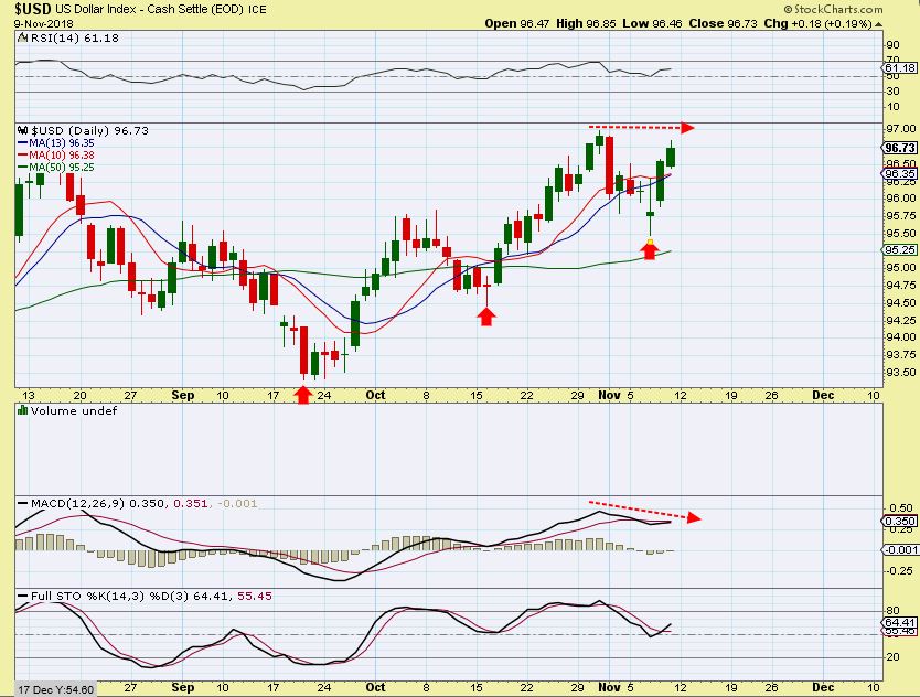 USD DAILY – The USD has been bullish since bottoming in September, and has what looks to be a new daily cycle starting.