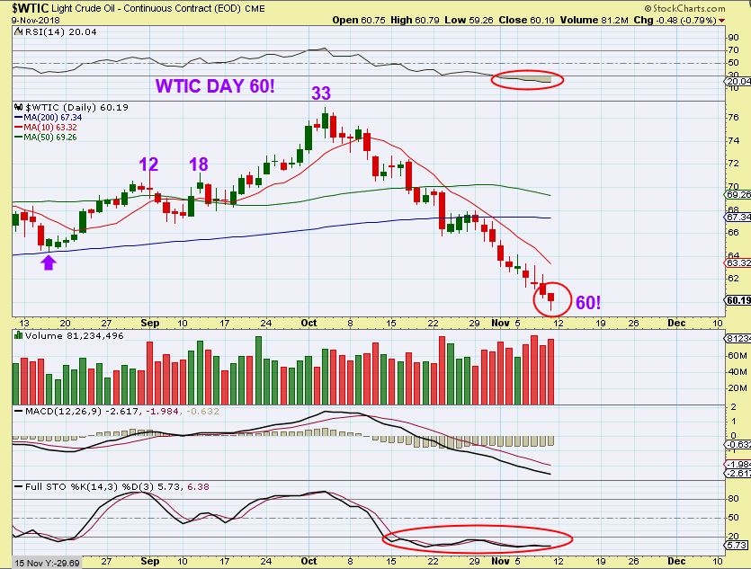 WTIC DAILY – And this reversal is on day 60, so I think Oils selling has run its course, watch for a swing low. UWT, USO, UCO are ‘long Oil’ plays.