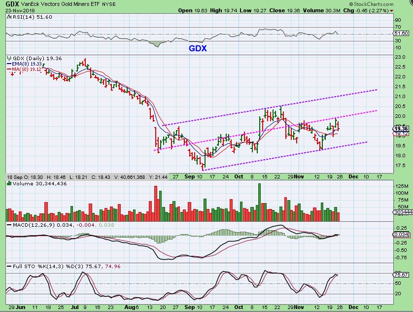 So at this point we still have Choppy General Markets threatening to break down further.  OIL has been relentless in its sell off, and broke a major trend line, which may not bode well for the longer term Big Picture, unless it can recover as a shake out.  The USD  Daily RSI looks to be weakening as it trades a 3rd daily cycle, it could ‘peak’ soon.   GOLD & the MINERS are ok so far, but traders do need stops. They could push higher if the USD  & Markets drop, but Gold is in its 3rd daily cycle.  It can peak now through day 12 as left translated, or can push higher into day 20 if it wants.    I gave short term Bullish scenarios  ( a Higher ICL in Gold as Miners move higher) and a short term bearish scenario  ( a drop to an ICL that breaks things down).   We do have individual charts that remain Bullish for several Miners, and the COT seems to be Bullish, so I have to take it step by step and look for clues along the way.