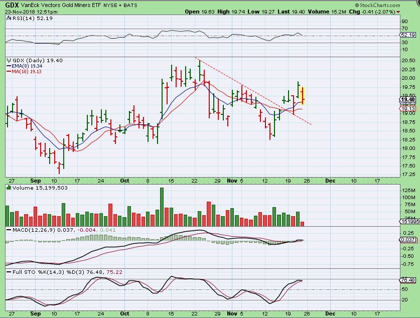 GDX#1 – I captured this near the close Friday. A gap was filled and price is still above the 10sma.
