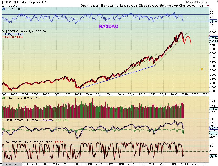 NASDAQ– And that could lead to this.  The uptrend has been broken, future bounces may be disappointing in the long run. This is actually when I expected Precious metals to become stronger, with money flowing into that sector as a safe haven,  we shall see.  One more market bounce to form this shoulder could occur as Gold seeks out the next ICL.