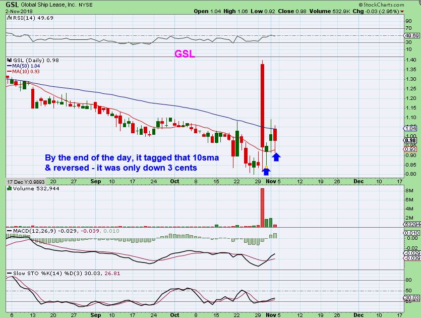 GSL DAILY – By the end of the day Friday, GSL had dropped down to that 10sma and then bounced. It is still oversold and the MACD crossed higher, I still own it. And …