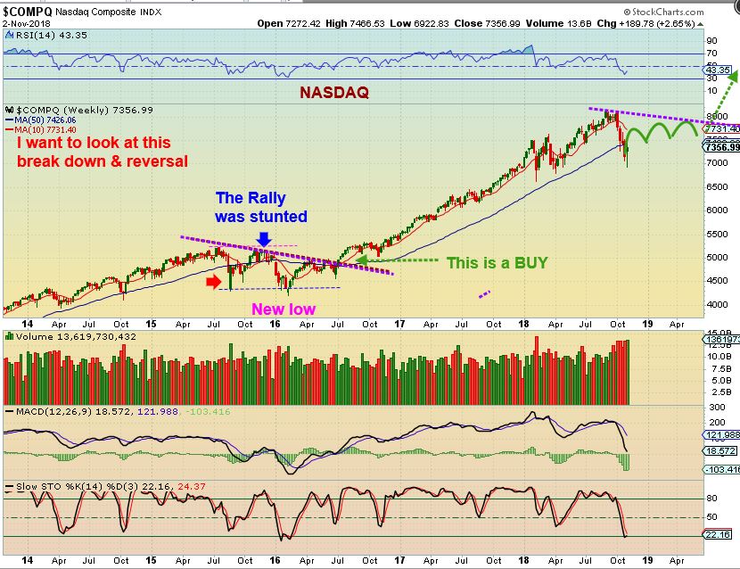 Those are 2 of the Longer Term ideas possible after that serious sell off in October. Short term, I am expecting 2 daily cycles that are trade-able, and the way those unfold will clue us in on which above scenario will play out- Bull or Bear. so we could move higher into the years end.