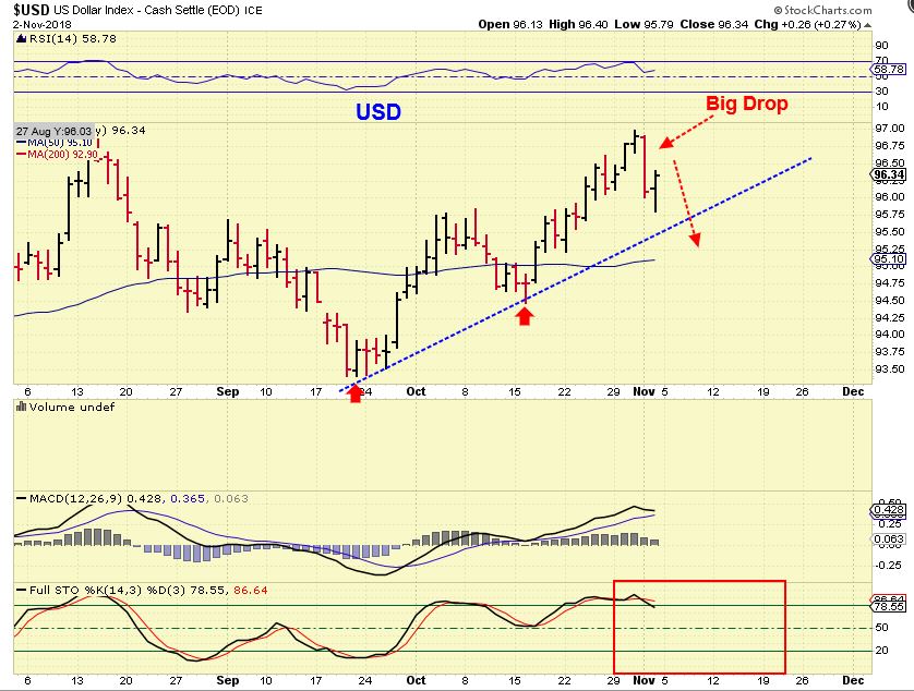USD DAILY – We saw a BIG DROP in the USD Thursday (And a BIG POP in Gold). Friday saw the USD reverse, is this recovering for a run higher? I do not think so …