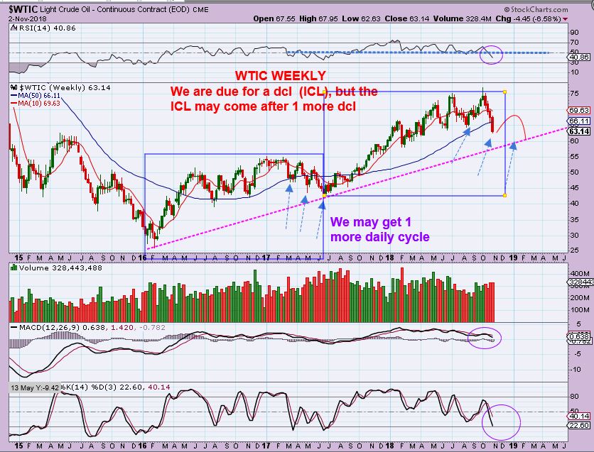 WTIC WEEKLY – I have detailed the daily count in this weeks reports, we are over day 50. After the low is in place, we may rally and roll over into an ICL, if this is not the ICL.