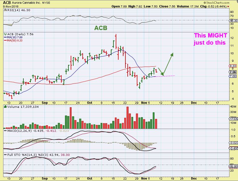 ACB – After Jeff Sessions resigned on Wednesday, ACB reversed higher & closed near the 50sma but…