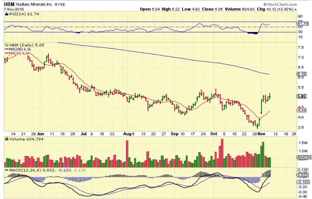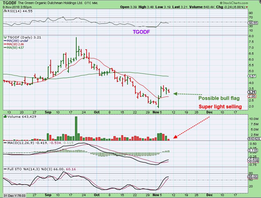 HBM – This copper stock had a stronger than usual Pop and may have a bull flag or ‘pause’ before higher price to the 200 sma. I would look for a higher low and higher high to begin taking place.