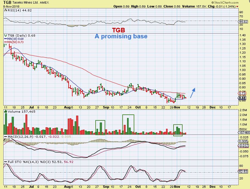 TGB – This copper stock is starting to look like a good base with bullish divergence and bullish set up. A close above the 50 sma would be a great start. So we can keep an eye on the Metals sector going forward too.