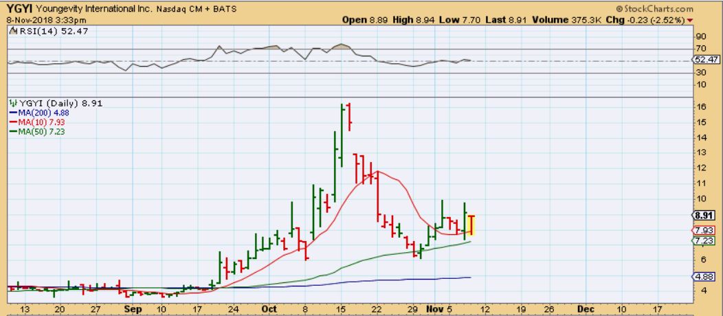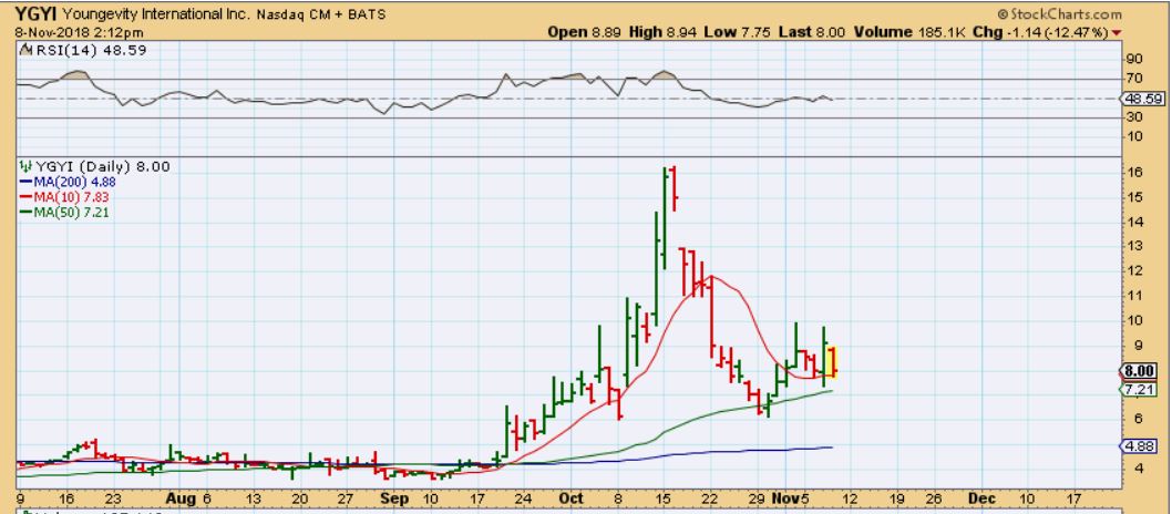 YGYI already dropped down & tagged the 10sma by Thursday morning– This was down big (12% which was $1.45 at one point).