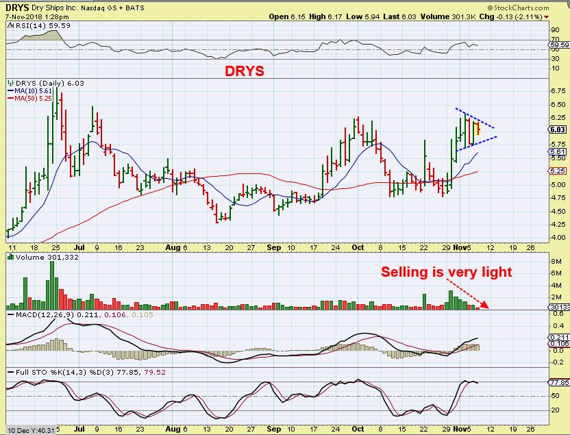 DRYS  –  Bull Flag?  VERY light selling .