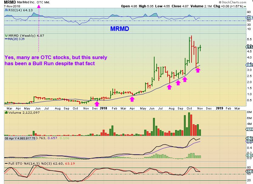 MRMD WEEKLY – If you look at this chart, it shows a very very difficult move,  but also a very Bullish move higher taking place over the entire year.  This was $0.50 to $5.50!  Not an easy ride.