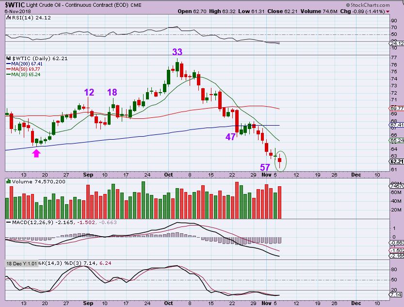 WTIC – Oil is very due for a dcl and this was yesterdays chart showing day 57.