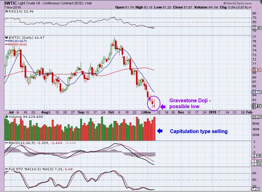 I have pointed out in the past that after a long sell off,  a Gravestoe Doji looks bearish, but actually can signal the end of a sell off.
