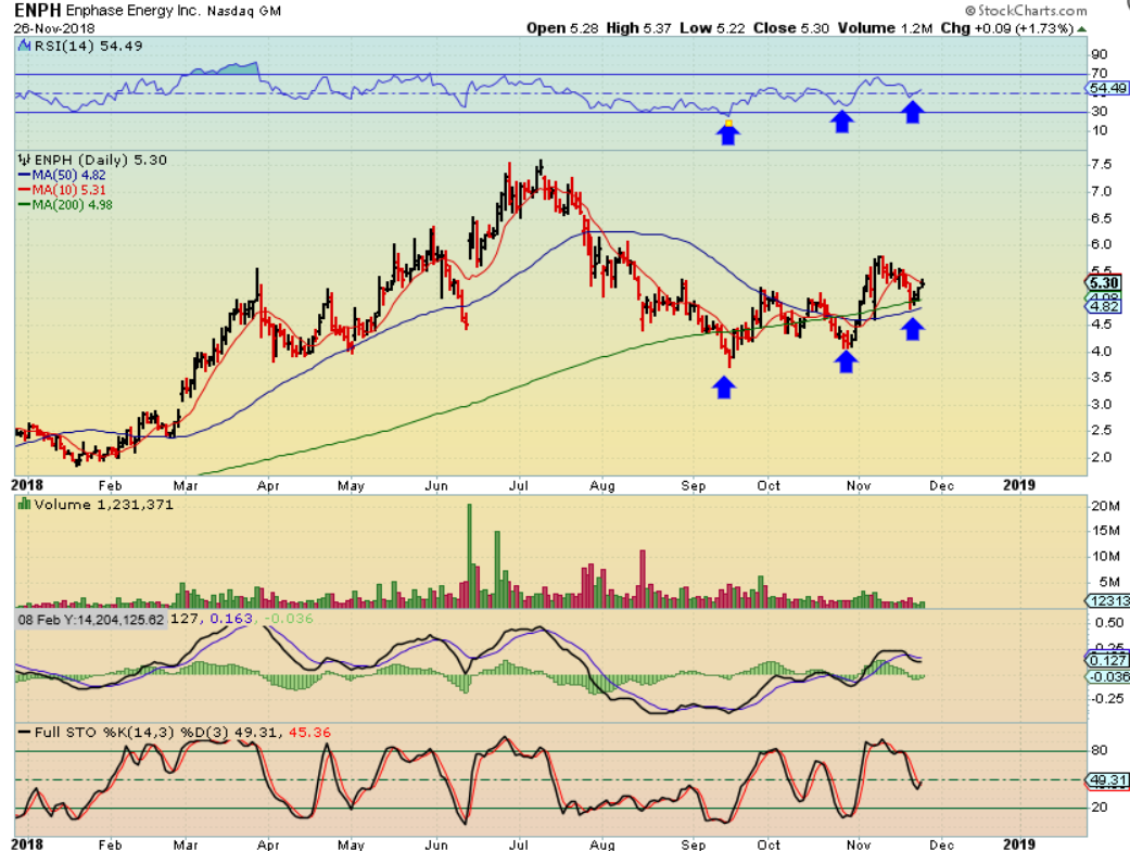 ENPH – This company is solar based and has worked to stabilize itself above the 200sma. Since the sector is acting bullishly, it could be bought with a stop at the 200sma. Notice how choppy it has been though- Nothing is riding easily lately.