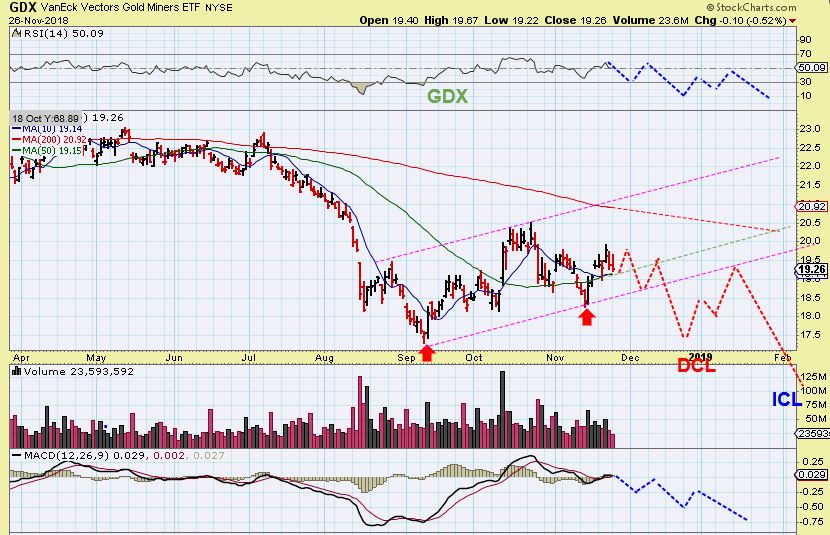 I know that even though Monday did not damage Gold or the Miners charts, it is just another day that has passed without any upside gains for those positioned long. It looks as though price may be re-visiting the 50 sma, so we are getting more of the choppiness or sideways chop that has just been boring and uneventful. Eventually we will be able to trade this sector with better gains, and I do think that it is setting up for a good run in the future, and the General Markets may be topping & dropping over time. The waiting is the hard part and if Miners cant rally higher from there, we will likely see more of the same chop and even a drop into the future ICL may begin.