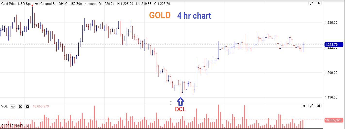 The good news is that this is gold as I write currently, and it is trying to break higher from here. Hopefully this can just break out from here and avoid forming a ‘dome’. You can watch for that today. A break to new higher from this dcl would be encouraging.
