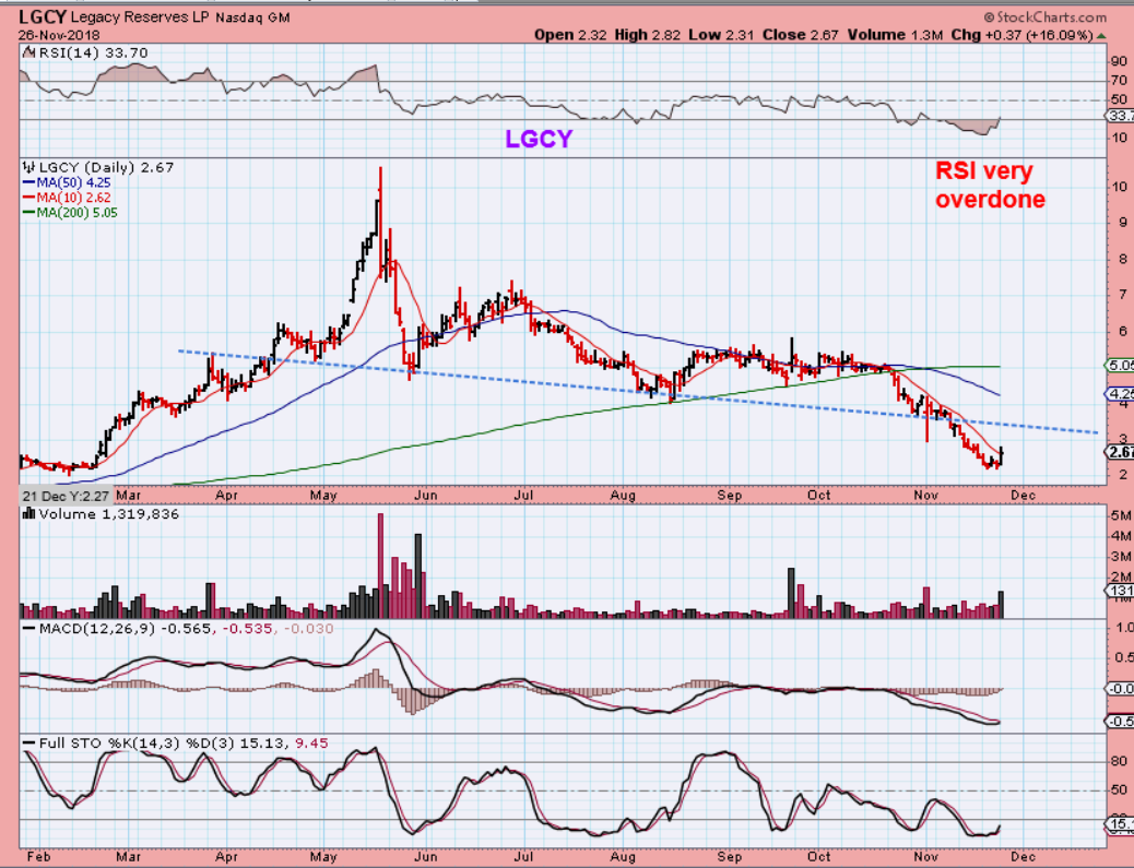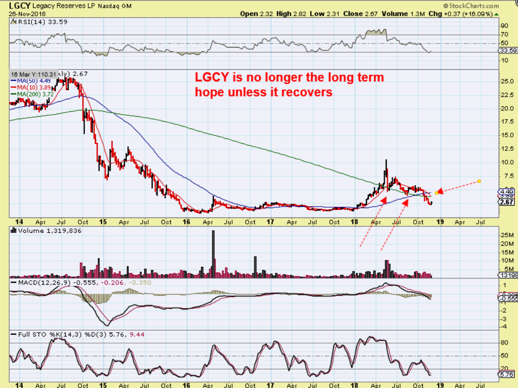 LGCY – Yes, this has changed. It broke down and I don’t like it as long as it remains broken, so my Monday purchase IS JUST A SHORT TERM TRADE. It may run higher to back test this break down and roll over again.