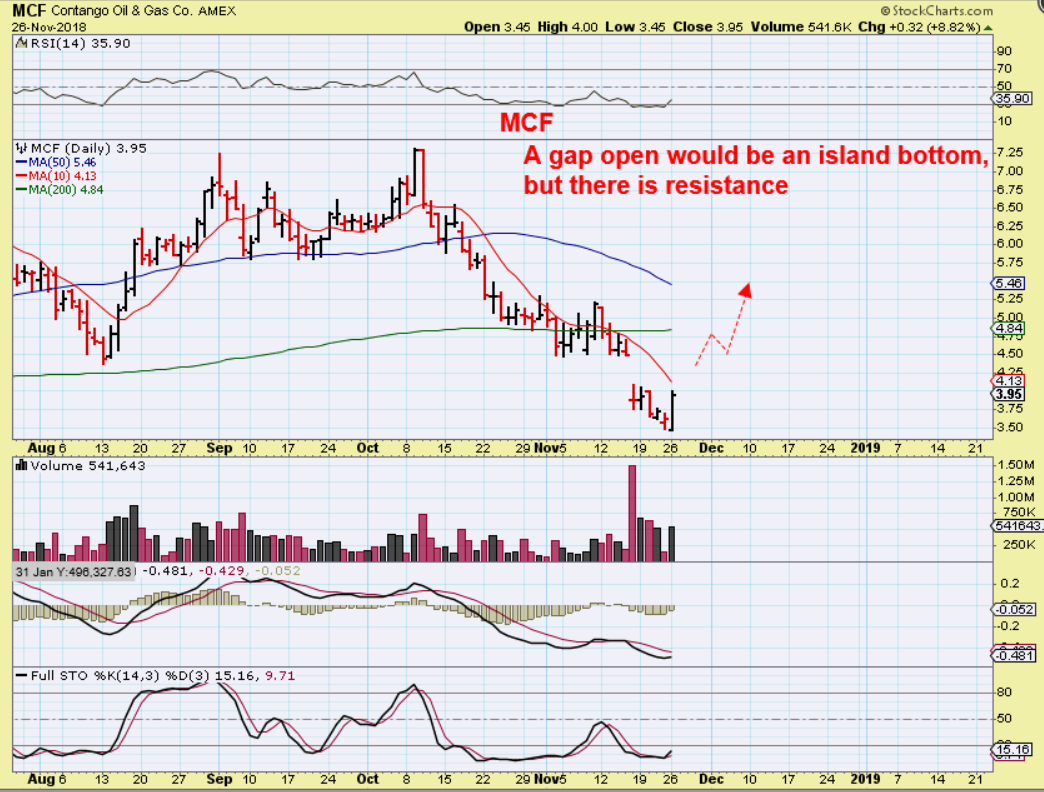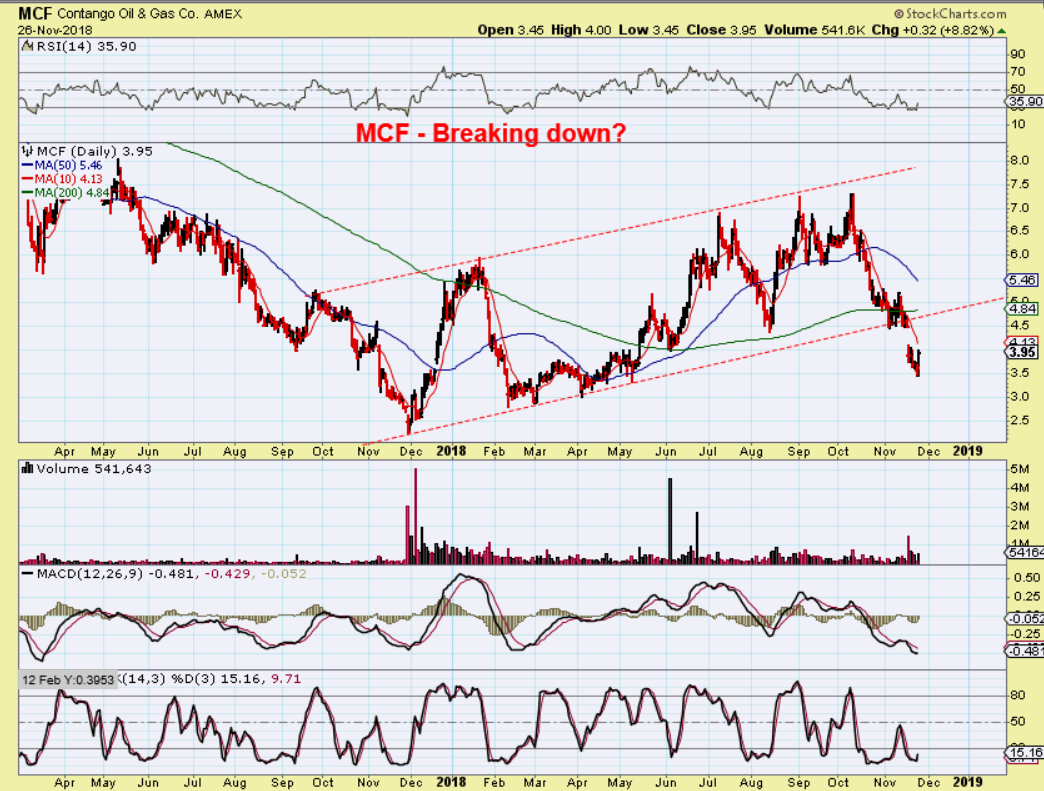MCF – Some energy stocks seem to be setting up, but they are still recovering from a severe downdraft. I’m watching MCF but …