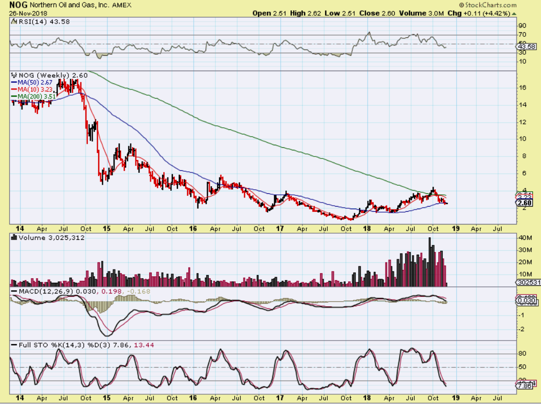 NOG – NOG is not too bad in the big picture if you draw a trend line at the lows from 2017 to now. It could recover quickly if Oil does, so I am looking for set ups that did not become broken, maybe ones that just got a bit ‘overdone’.