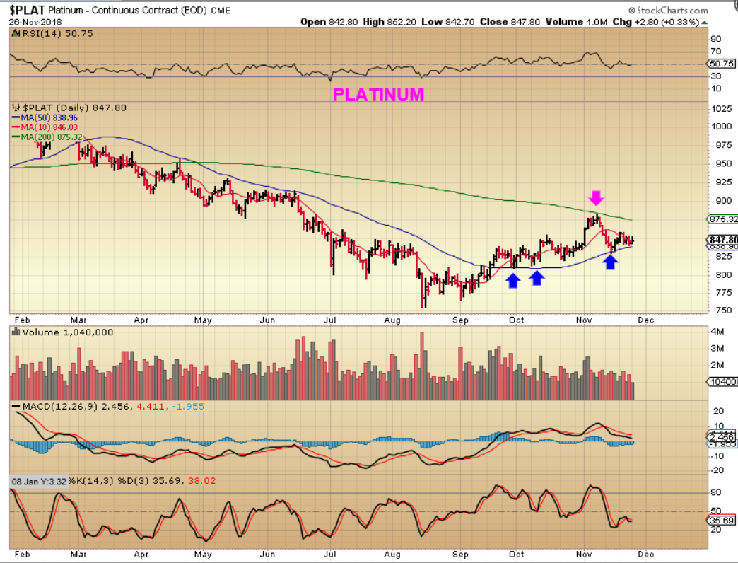 Instead of just looking at the GOLD , SILVER, & MINERS, I wanted to also check out the PLATINUM Chart and make sure that it is still holding up.